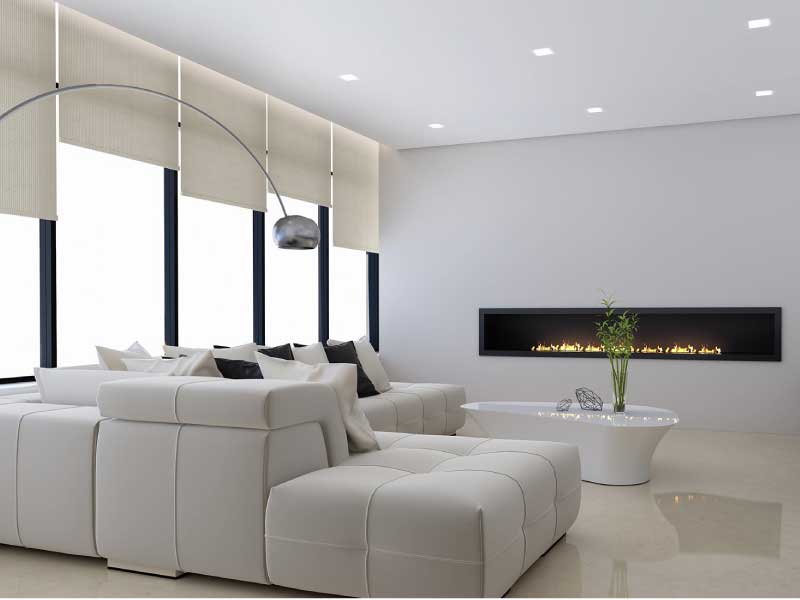 Cortinas fabricadas con módulos simétricos horizontales y perfectamente lisos.  Disponibles en una amplia variedad de telas con diferentes niveles de opacidad, texturas y colores.